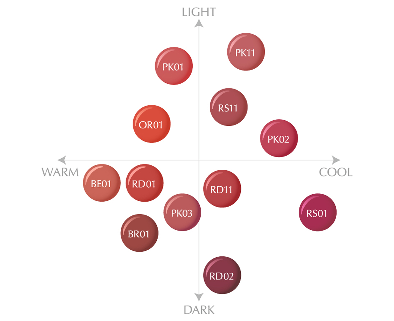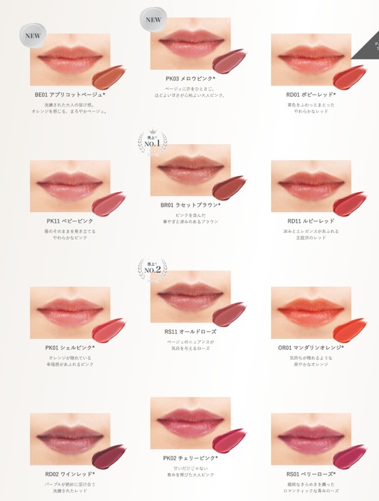 明度を抑え、彩度を高めに調整することにより、鮮やかなのに肌から浮かず、肌と唇が美しく見える発色を実現します。